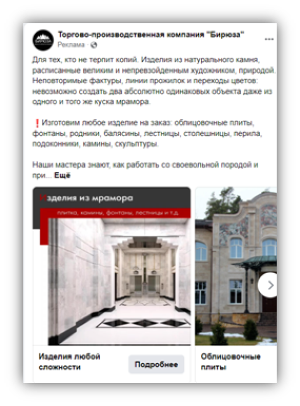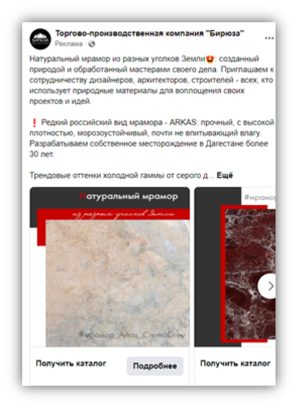 «Натуральный камень из разных уголков Земли. Мрамор, гранит, травертин и другие виды. Из собственных месторождений в Дагестане, а также из стран Европы и Азии. Мы добываем камень более 30 лет. И умеем создавать изделия, способные поразить»