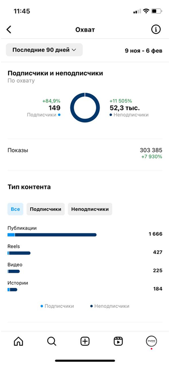 Активность в соц.сетях:Не смотря на то, что целью нашей рекламной компании в социальных сетях было увеличение скачиваний приложения и рекламу вели исключительно на магазины приложений (AppStore, GooglePlay и др.), выросли охваты и самих аккаунтов Instagram* и Facebook* (те, кто не скачивал приложение, подписывались на сообщества).